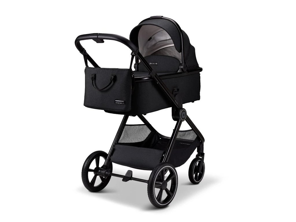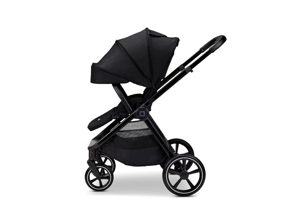 - Praktický a diskrétně integrovaný košík – poskytuje dostatek prostoru pro všechny věci, které potřebujete na cestách, aniž by narušoval celkový design kočárku.