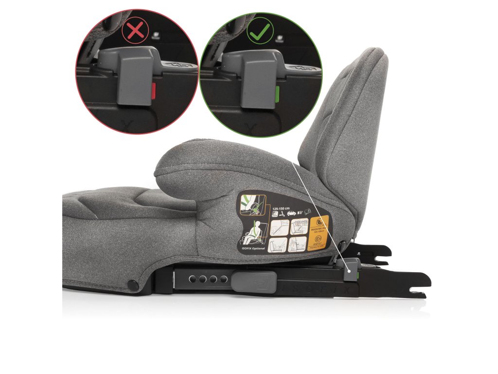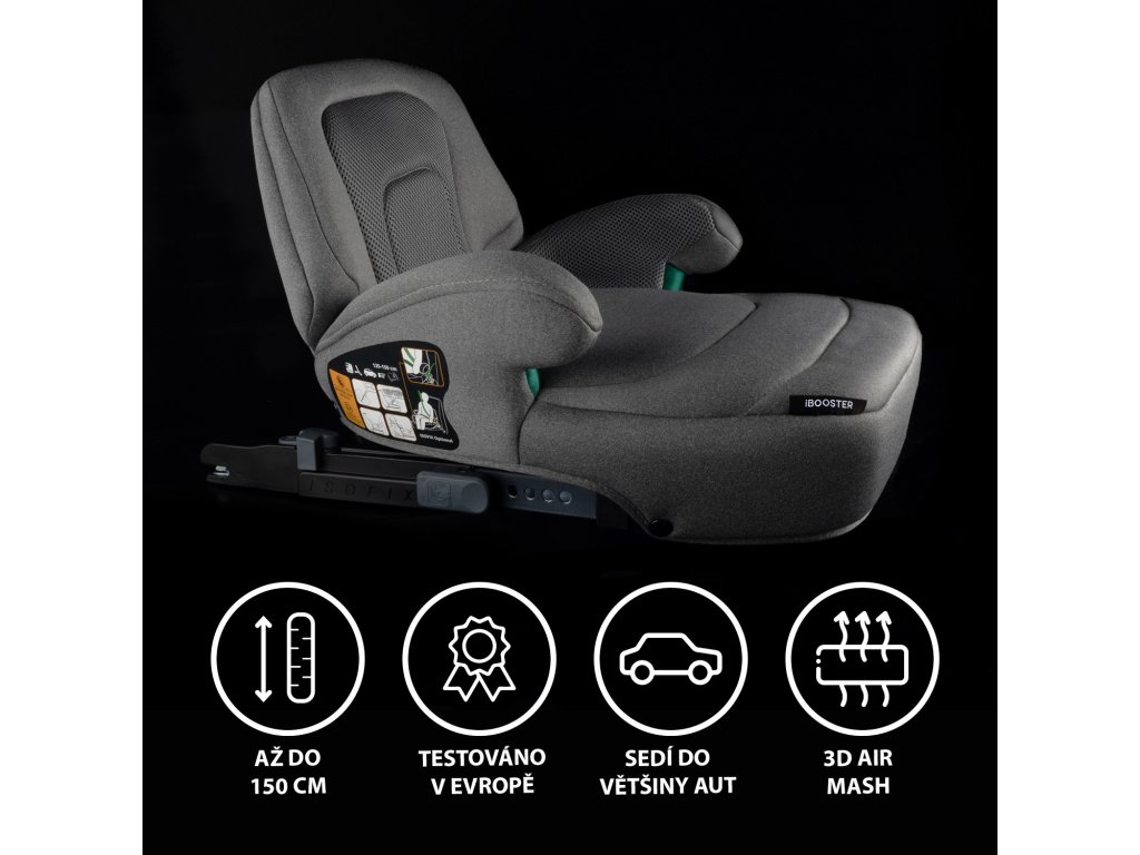 Podsedák iBooster byl testovaný v Evropě a splňuje nejnovější bezpečnostní normu i-Size. Do auta ho lze instalovat pomocí isofixu a bezpečnostního pásu vozidla nebo pouze pomocí bezpečnostních pásů vozidla. Indikátory rodičům ukážou, kudy je potřeba pás vést, aby perfektně chránil dítě.