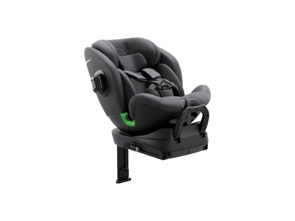 - Otočná základna: Otočná základna umožňuje snadné umístění a zajištění dítěte v sedačce.