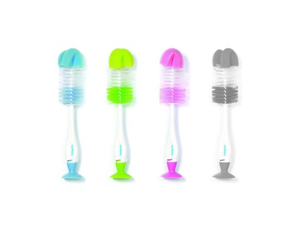Kartáč na čištění lahví a saviček 2v1 s přísavkou značky BabyOno je určen pro snadné čištění dětských lahví a saviček.Kartáč je složen ze 2 částí - uvnitř konce rukojeti velkého kartáče (určený na čištění vnitřku lahví) je umístěn menší kartáček (určený na čištění saviček)