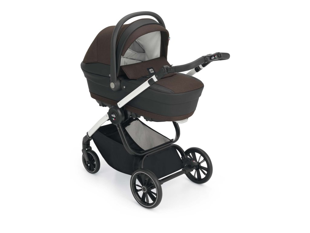 Prostorná elegantní korba je potažená texturovanou tkaninou s ozdobnými prvky z eko kůže. Nánožník hluboké korby lze snadno odepnout pomocí zipů. Díky větrání na boudičce je ideální i pro letní měsíce. Korbu lze po vyklopení vzpěr na spodku vaničky využívat i jako kolébku. Pomocí pojistky na spodku korby je možné výškově polohovat hlavičku dítěte. Korba má jednoduchý systém odepnutí z podvozku, pouze pomocí jedné pojistky, pro ještě větší bezpečí při manipulaci s korbou a dítětem.