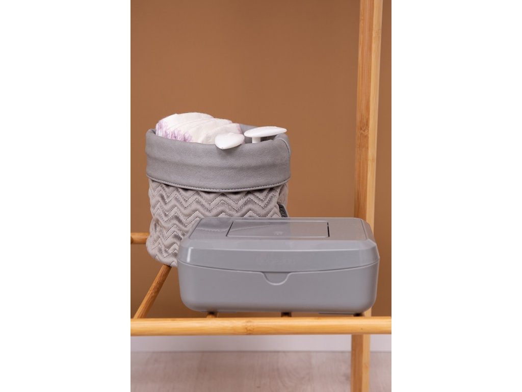 Při přebalování na komodě nebo po koupání je vždy potřeba mnoha pomůcek pro péči o dítě. Například hřeben a kartáč, manikúra, krém, mléko nebo také plenky. Všechny tyto věci můžete mít na jednom místě v trendy textilním košíku od Bébé-Jou.