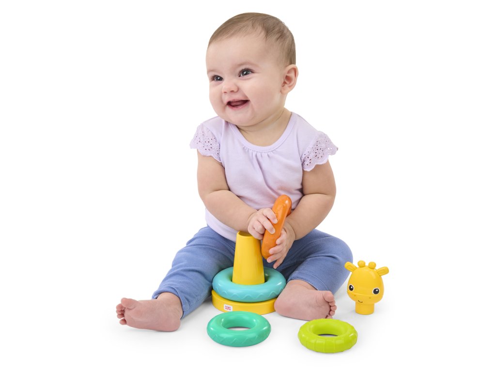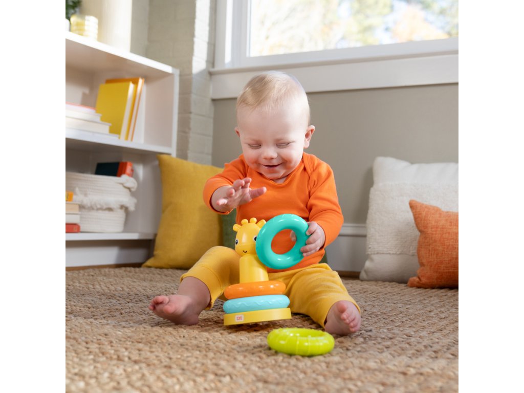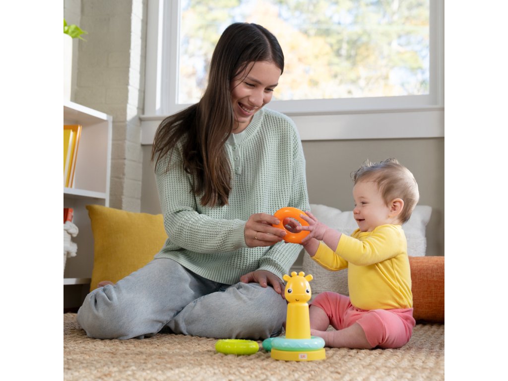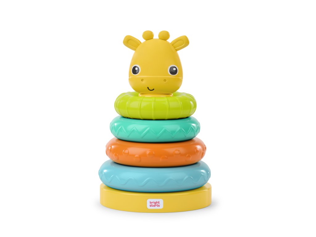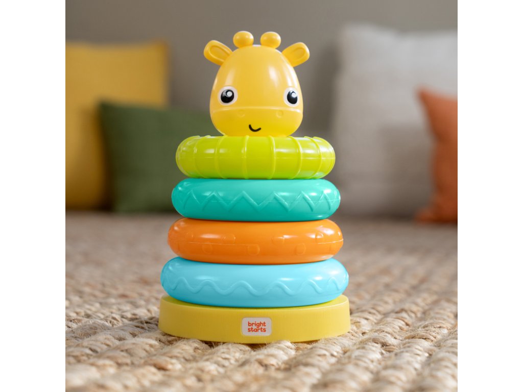 Objevte nové výšky hravosti se stohovací žirafou od Bright Starts – zábavnou a rozkošnou věží s kroužky, kterou si vaše děťátko zamiluje! Lehké, barevné kroužky se ukládají jeden na druhý směrem k usměvavé tváři žirafy, čímž podporují rozvoj jemné motoriky a koordinace ruka-oko. Každý kroužek má jiný povrch a barvu, což stimuluje smysly a pomáhá dětem objevovat nové textury a barevné kombinace. Tato interaktivní hračka podporuje kognitivní vývoj – dítě se učí, jak do sebe jednotlivé části zapadají a v jakém pořadí.Vlastnosti: