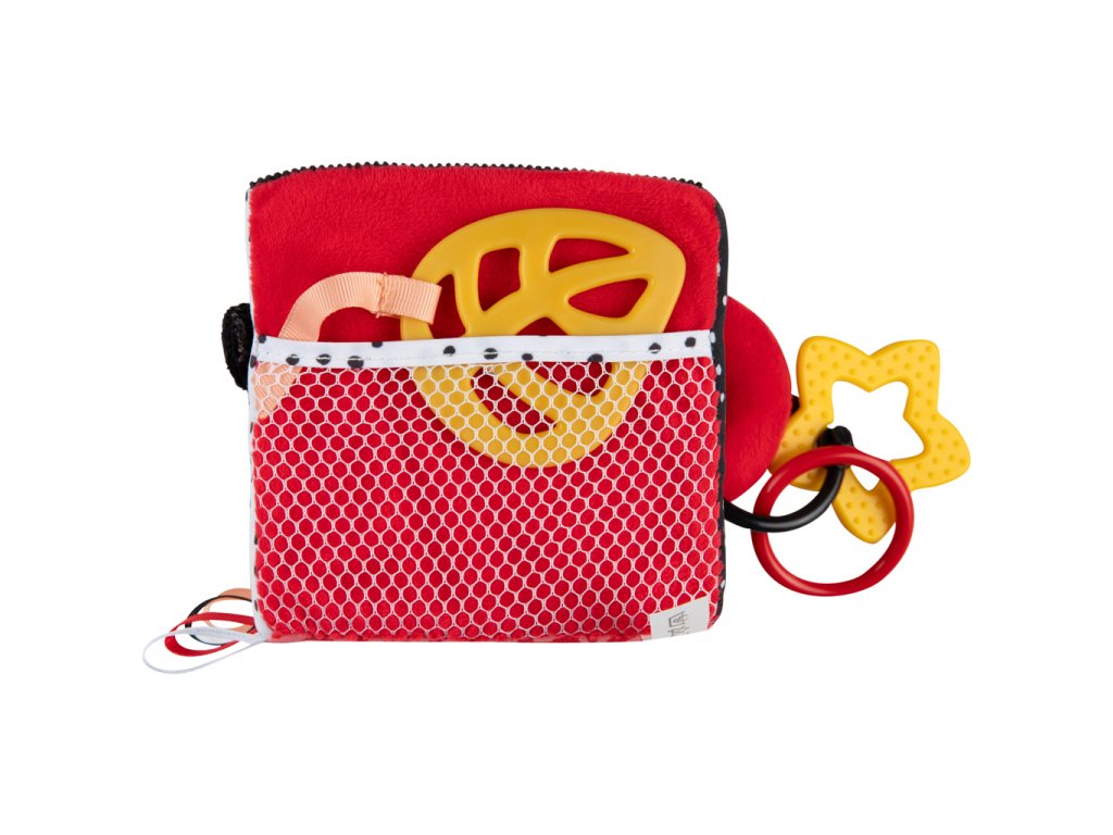 - Plastový kroužek - ideální pro připevnění ke kočárku, dětskému nosiči, houpačce nebo autosedačce.