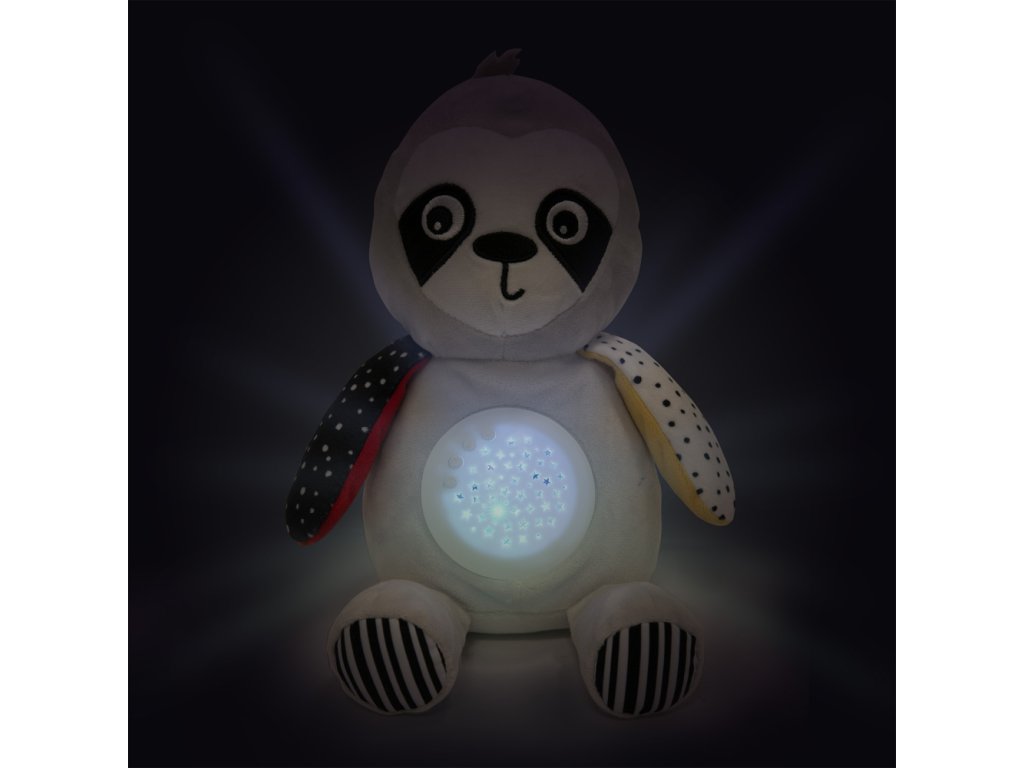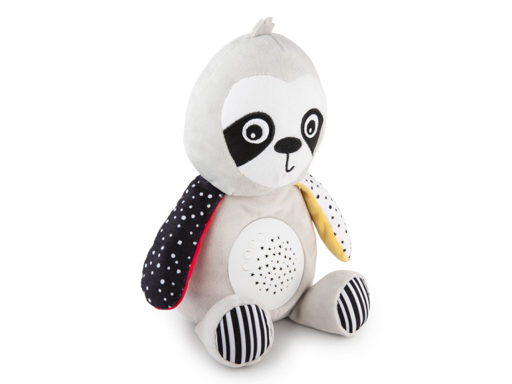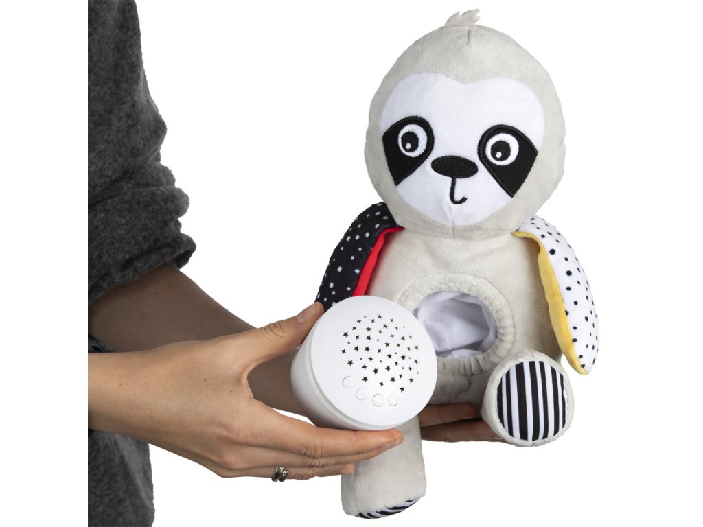 Senzorická hračka s melodiemi a projektorem BabiesBoo 3v1 je skvělým společníkem při každodenním usínání a hraní každého miminka. Měkká senzorická hračka v kontrastních barvách, které novorozenci vidí jako první, podporuje správný vývoj dětského zrakového vnímání. Projektor s melodiemi je schovaný v bříšku hračky, obsahuje melodie, které uklidňují a tiší miminko, čímž usnadňují usínání. Hračku je snadné udržovat v čistotě – po vyjmutí projektoru lze plyšovou hračku mýt v ruce. Hračka má 3 provozní režimy: může zobrazovat světelnou projekci (hvězdy) a přehrávat melodie, přehrávat pouze melodie nebo promítat jen tlumené světlo, čímž funguje jako noční světýlko. K dispozici je 12 uklidňujících melodií, včetně jemných přírodních zvuků, zpěvů ptáků a tlukotu srdce. Hlasitost lze nastavit podle preferencí miminka na 5 úrovních. Po 30 minutách se hračka automaticky vypne. Ideální dárek od narození, doporučeno fyzioterapeutkou Magdalenou Zujewicz.