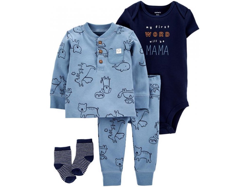 Všechny modely značky Carter's jsou vyrobeny ze super měkké bavlny a množstvím lásky. Set 4dílný je velmi vhodný i do výbavičky dítěte. Nemusíte přemýšlet nad kombinací. Jednoduše stačí jen obléci. Všechny výrobky jsou navrženy tak, aby byly velmi pohodlné na nošení a v trendy barvách. Sety jsou velmi oblíbené u maminek.Vlastnosti