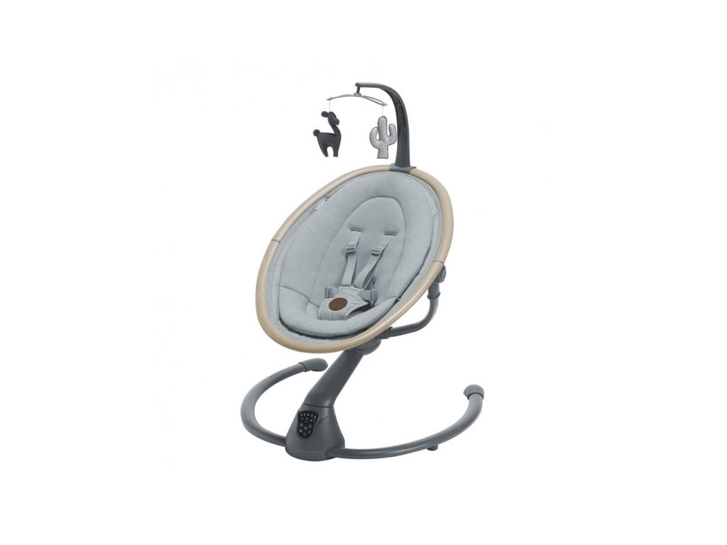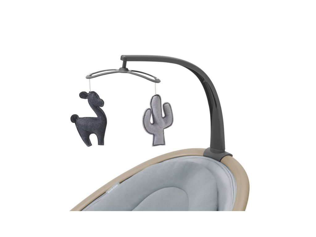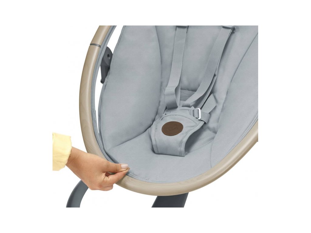 Houpací lehátko v krásném designovém provedení Maxi-Cosi Cassia poskytne vašemu dítěti pohodlí a možnost být neustále ve vaší blízkosti. Lehátko je vhodné pro spaní i pro zabavení dítěte pozorováním jeho okolí. Svým originálním designem se stane i krásným doplňkem vašeho interiéru. Lehátko umožňuje nastavení pěti rychlostí houpání a časovač na 8, 15 nebo 30 minut. Lehátko můžete otáčet o 360°, abyste na sebe s dítětem viděli bez ohledu na to, kde se v místnosti nacházíte. Lehátko nabízí dvě polohy sklonu na spaní i na pozorování okolí. Hudební box s možností nastavení hlasitosti obsahuje 12 melodií a přírodních zvuků. Detektor pohybu automaticky zapne uklidňující houpání, když se dítě probudí a začne plakat. Měkké hračky zavěšené na hrazdě se při houpání lehátka jemně pohybují a upoutají tak pozornost dítěte. Lehátko je vybaveno pohodlnou měkkou vložkou pro maximální pohodlí dítěte a 3-bodovým bezpečnostním pásem. Textilní části lehátka jsou s ohledem na udržitelnost životního prostředí vyrobeny ze 100% recyklovaných materiálů. Snímatelný potah je možné prát v pračce. Lehátko je napájeno ze sítě a nabízí i možnost fungování na baterie (4xAA baterie nejsou součástí balení). Hmotnost: 4 kg Vhodné od narození do cca 6 měsíců (do 9 kg).Doplňkové parametry