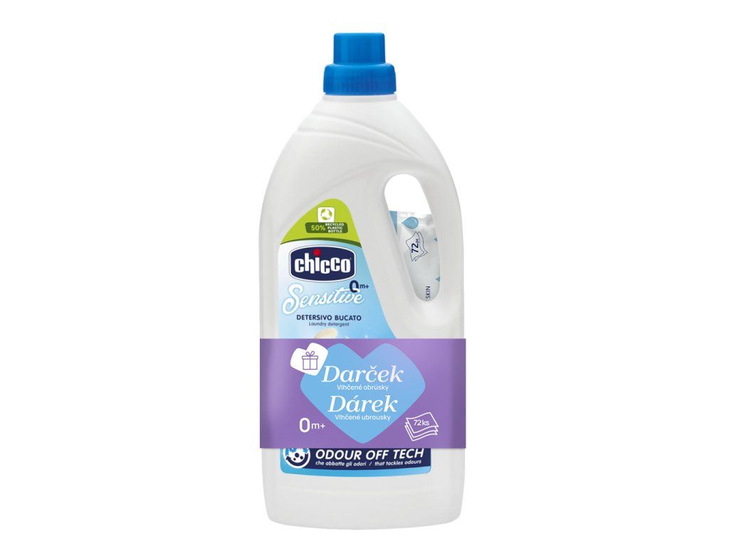 CHICCO Prací gel Baby Sensitive 1,5 l (27 praní) + vlhčené ubrousky 72 ks zdarma