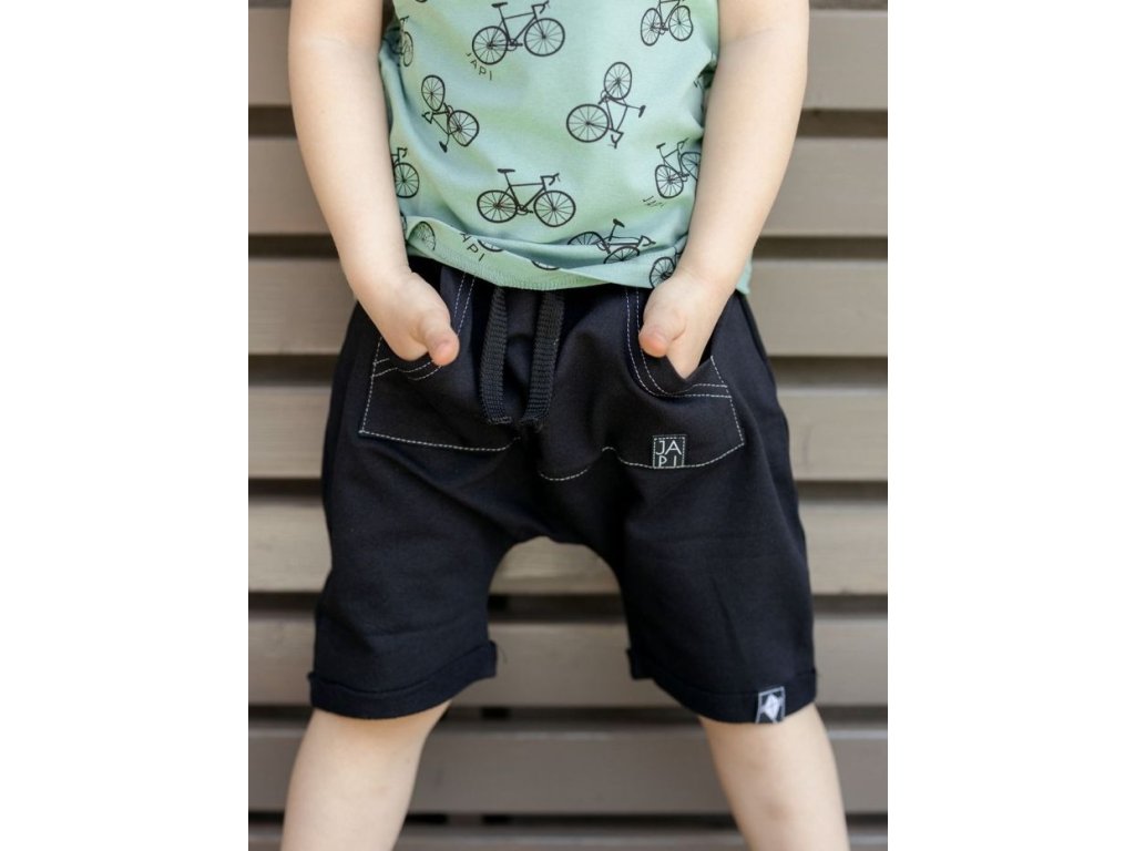Dětské pudlové kraťasy na léto pro malé kluky.Pohodlný střih těchto kalhot využijete v teplejších dnech. Mají širší pohodlnou gumičku v pase, která netlačí, ale drží je na místě. Pudlový střih je velmi pohodlný.Neutrální černá barva je snadno kombinovatelná – zkuste například trička či body z kolekce Dino, Bike nebo Splash. Vytvoříte tak stále nové outfity pro malé kluky.Buďte první, kdo napíše příspěvek k této položce.