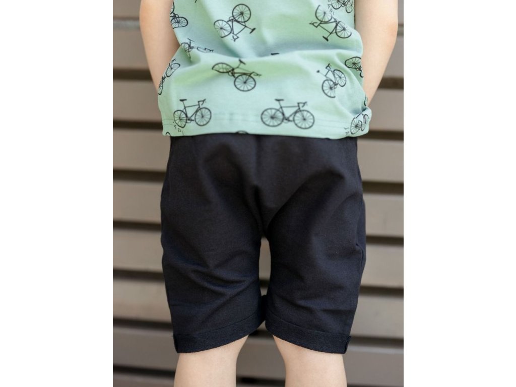 Dětské pudlové kraťasy na léto pro malé kluky.Pohodlný střih těchto kalhot využijete v teplejších dnech. Mají širší pohodlnou gumičku v pase, která netlačí, ale drží je na místě. Pudlový střih je velmi pohodlný.Neutrální černá barva je snadno kombinovatelná – zkuste například trička či body z kolekce Dino, Bike nebo Splash. Vytvoříte tak stále nové outfity pro malé kluky.Buďte první, kdo napíše příspěvek k této položce.