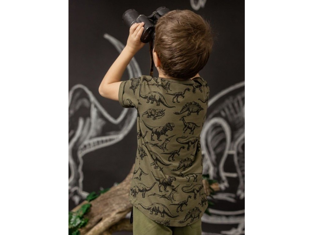 Chlapecké tričko z bavlny s potiskem dinosaurů.Triko jako stvořené pro všechny milovníky dinosaurů. Celopotisk ukrývá různé dinosaury, jejichž malý objevitelé budou jistě znát. Na jednobarevném základě zelené a modré barvy jsou černé obrázky dinosaurů. Triko má pohodlný střih a je ušito z příjemné bavlněné látky s certifikátem.Triko můžete zkombinovat s tepláky na kšandy z této kolekce a máte pěknou soupravu pro kluky.Buďte první, kdo napíše příspěvek k této položce.