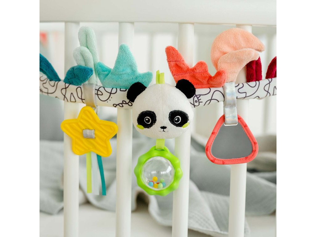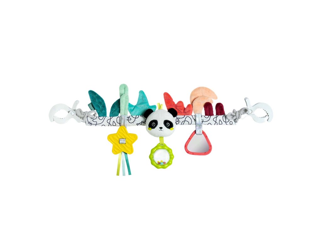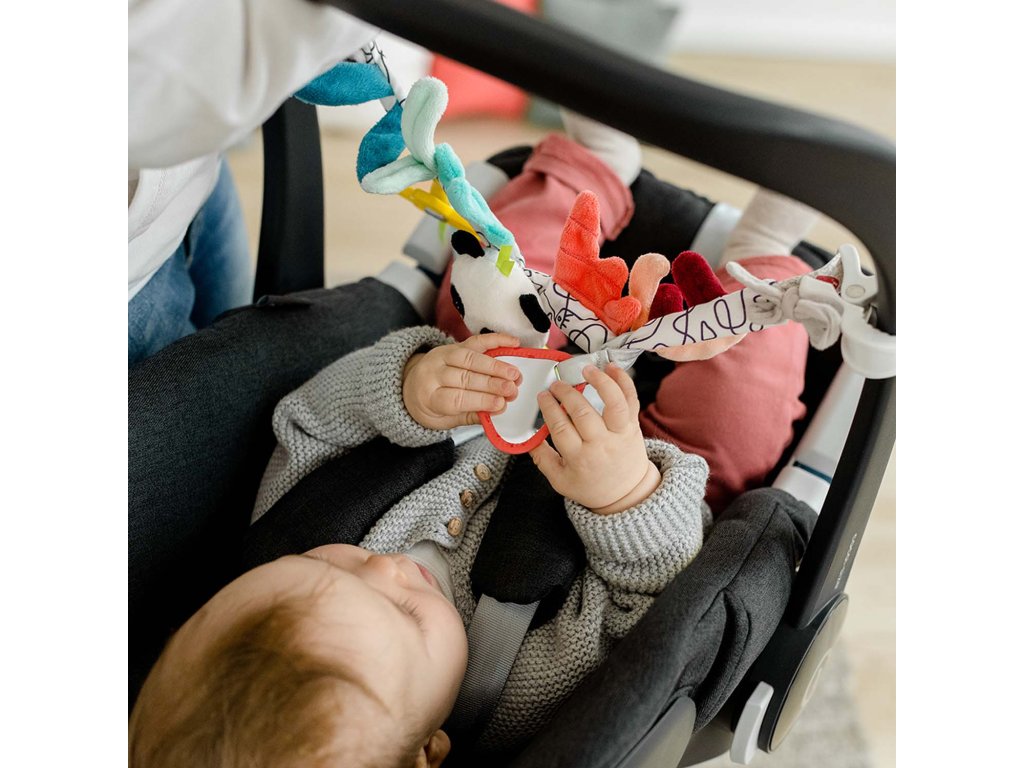 Díky pestrým barvám, rozmanitým texturám a roztomilým postavičkám je řetěz kočárku dokonalou hračkou na každý výlet – podporuje smysl pro zrak, sluch a úchop. Udržuje pozornost děťátkách na cestách a spolehlivě jej zabaví.