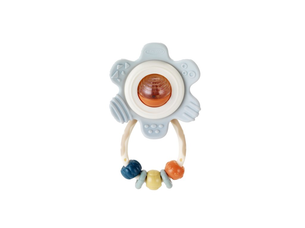 Chrastítko Infantino ve tvaru květiny má tvar pro snadné uchopení. Pozornost dítěte upoutají pohyblivé různobarevné kroužky na rukojeti i chrastící korálky v průhledné kuličce uprostřed hračky. Okvětní plátky květiny slouží jako kousátka, která dítěti pomohou při prořezávání prvních zoubků. Chrastítko podporuje rozvoj jemné motoriky dítěte i jednotlivých smyslů. Vhodné pro děti od narození.Doplňkové parametry