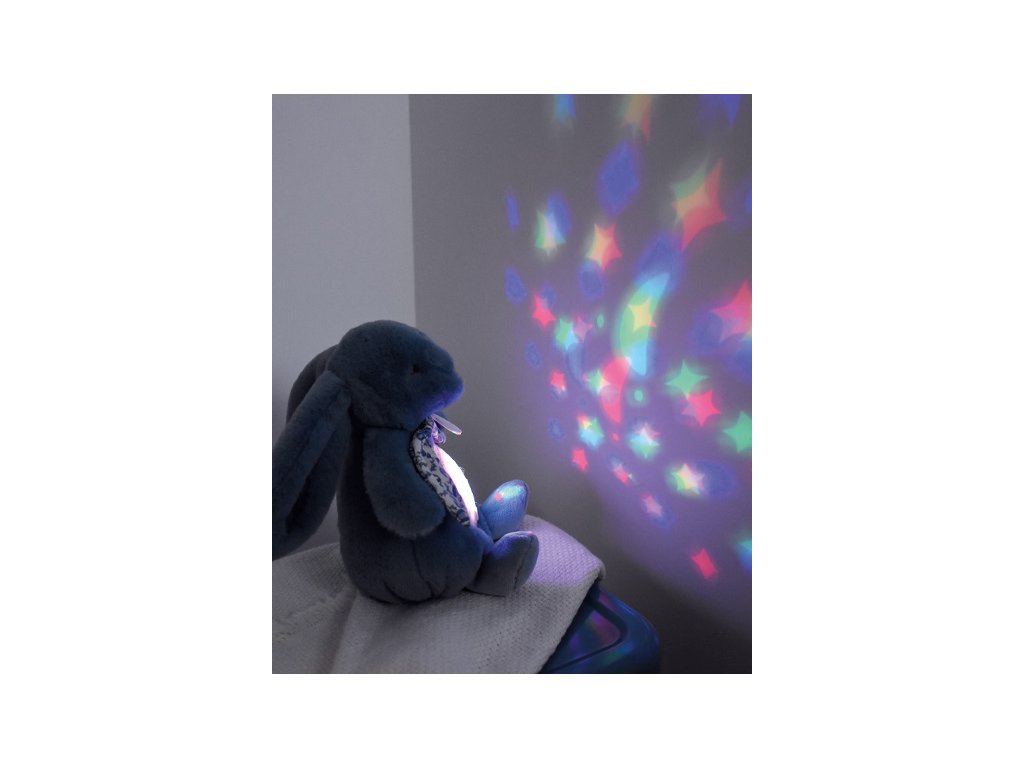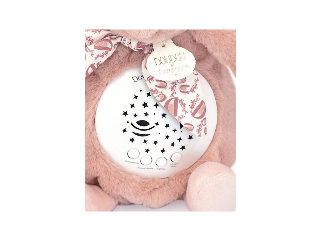 Zajačik od DouDou et Compagnie v krásnych púdrových farbách je veľmi jemný a bábätko si ho rýchlo obľúbi. Na stenu si premietnite hviezdičky a upokojujúca melódia ľahko uspí bábätko. Svetlo je mäkké, čím vytvorí relaxačné a upokojujúce prostredie. Ideálny darček pri narodení bábätka. 10 rôznych melódií 5 x rôzny biely šum Samostatné vypnutie po 30 min Nastaviteľný zvuk 7 rôznych farieb, ktoré sa príjemne a postupne menia Rozmer: 24cm Materiál: 100% polyester Starostlivosť a údržba: čistite vlhkou handričkou nesmie sa bieliť nesmie sa chemicky čistiť nesmie sa žehliť nesmie sa sušiť v bubnovej sušičkeDoplňkové parametry