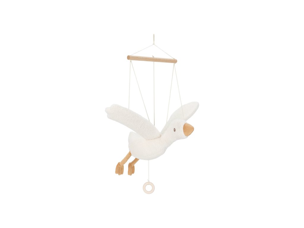 Lehká a elegantní dekorace v podobě roztomilé letící husy dodá dětskému pokojíčku nádech klidu a kouzla. Husa působí, jako by se vznášela ve vzduchu a vytváří tak snovou atmosféru nad postýlkou či v hracím koutku. Vzdušný design plný fantazie: Elegantní husa s měkkým textilním tělem se jemně pohupuje ve vzduchu Podporuje klidné usínání a rozvíjí dětskou představivost Ideální jako dekorace nad postýlku – bez zvuku, jen pro jemný vizuální dojem Tlumené barvy a přírodní materiály zapadnou do moderního i klasického dětského pokoje Vhodné od narození jako závěsná dekorace mimo dosah dítěte Létající husa je součástí designové kolekce hraček a doplňků Little Dutch Newborn Naturals. Rozměry: 39 × 30 × 11 cm Materiál: 100 % polyester, dřevěný závěs Výplň je vyrobena ze 100% recyklovaného polyesteru s certifikací GRS (Global Recycled Standard). Tělo husy je možné po oddělení od závěsu ručně prát (max. 30°C). Vhodné od narození jako závěsná dekorace mimo dosah dítěte.Doplňkové parametry