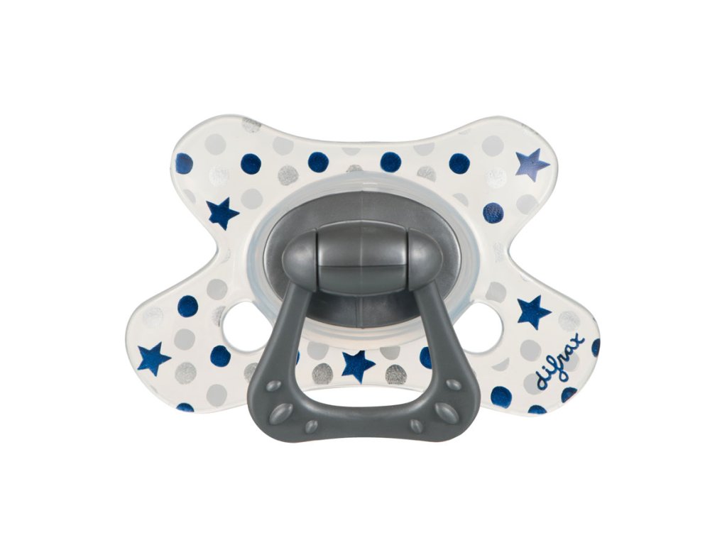 Unikátní dudlík Difrax má kotouč ve tvaru motýla, dokonale tak padne tvaru obličeje vašeho miminka. Vykrojení kotouče umožňuje miminku volné dýchání nosem. Dva přídavné otvory zabezpečují dostatečný průchod vzduchu, čímž omezují možnost podrážení pokožky miminka. Dudlík dodává miminku pocit pohodlí, útěchy a uvolnění. Difrax dudlíky jsou navíc dostupné v několika populárních provedeních a v různých barvách.