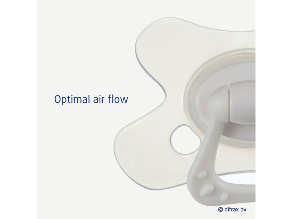 Unikátní dudlík Difrax má kotouč ve tvaru motýla, dokonale tak padne tvaru obličeje vašeho miminka. Vykrojení kotouče umožňuje miminku volné dýchání nosem. Dva přídavné otvory zabezpečují dostatečný průchod vzduchu, čímž omezují možnost podrážení pokožky miminka. Dudlík dodává miminku pocit pohodlí, útěchy a uvolnění. Difrax dudlíky jsou navíc dostupné v několika populárních provedeních a v různých barvách.