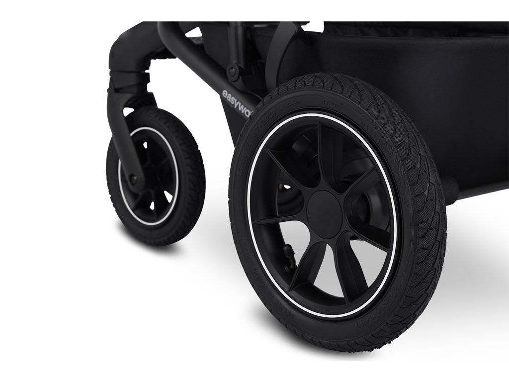 - Součástí kočárku jsou odolná gelová kola i nafukovací kola vhodná do jakéhokoliv terénu