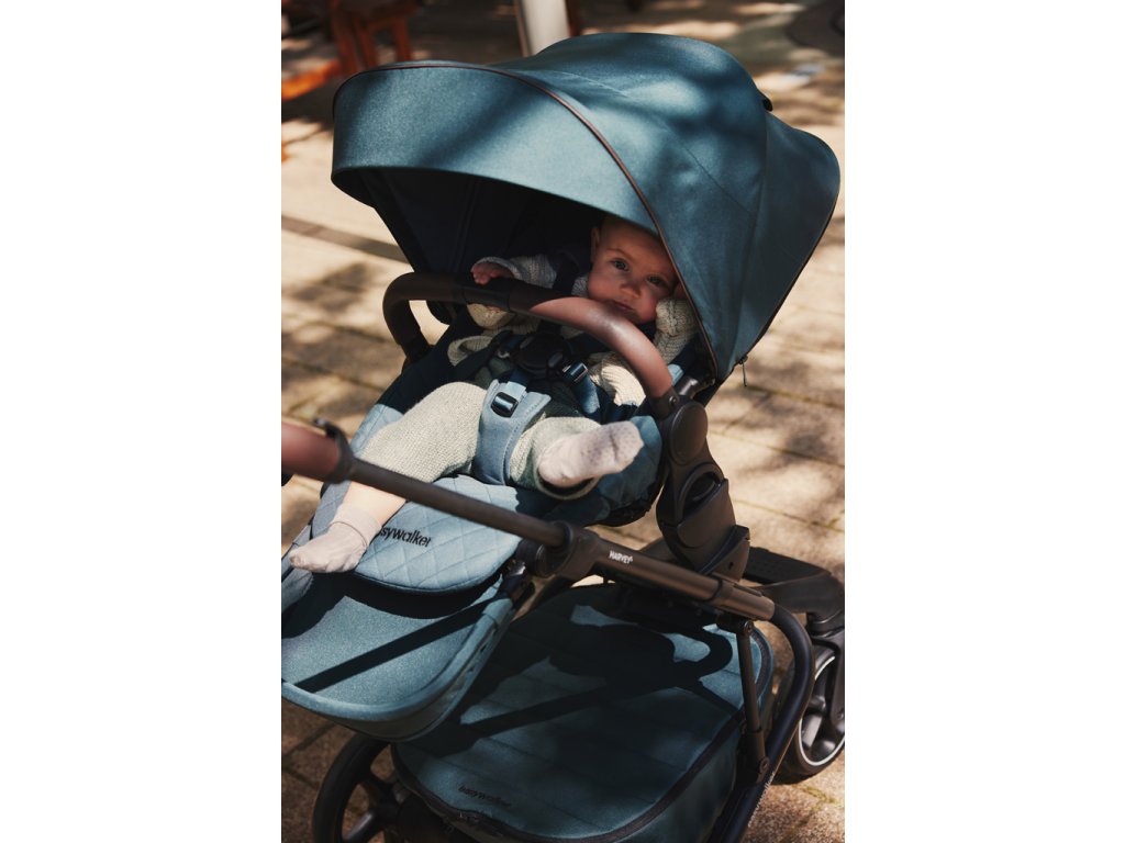 Ať je počasí jakékoli, není třeba se bát. Vaše miminko zůstane ve stínu nebo hezky v suchu díky extra velké stříšce Harvey s okénkem a stylovými koženými detaily, která poskytuje UPF 50 ochranu proti slunci a je vodoodpudivá.
