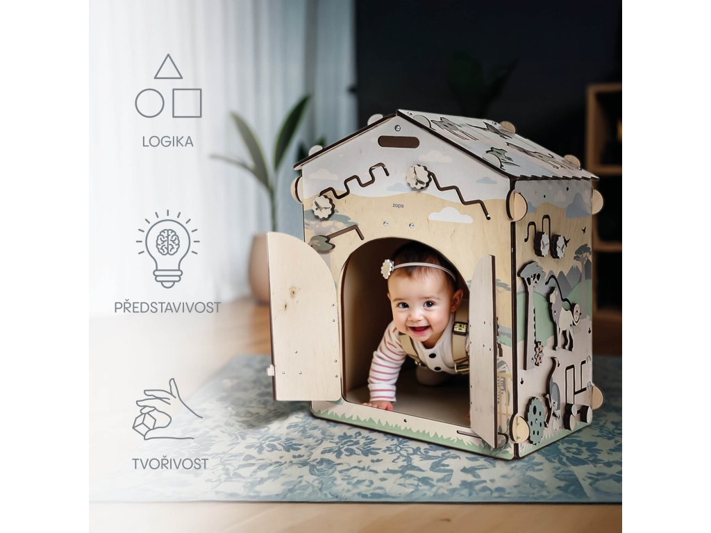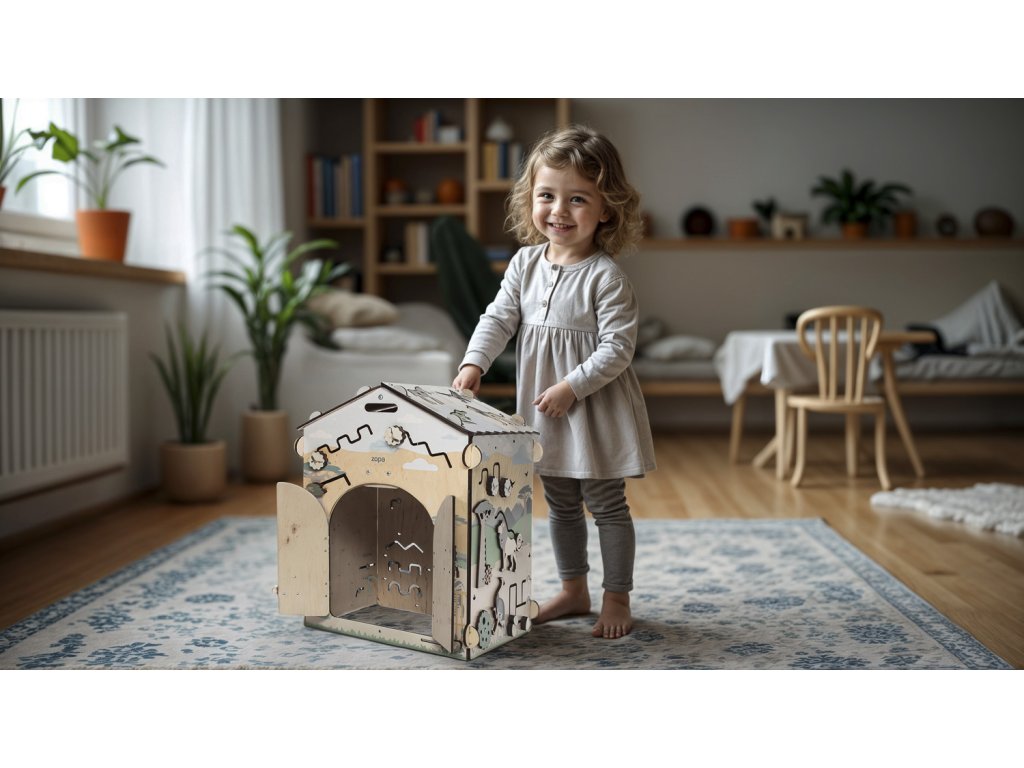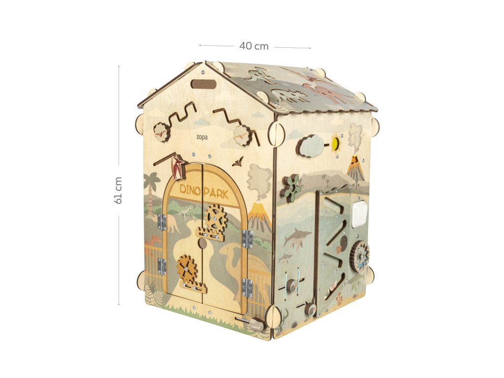...proč zrovna domeček?Domeček děti milují – mohou do něj zalézt, schovat si tam hračky nebo si z něj udělat vlastní svět. Tenhle má ideální rozměry (61 × 40 cm), je stabilní a krásně ilustrovaný v pravěkém stylu. Ať už je to základna pro výzkumníky nebo místo na kreslení dinosauřího dortu, jedno je jisté – fantazie jede naplno.
