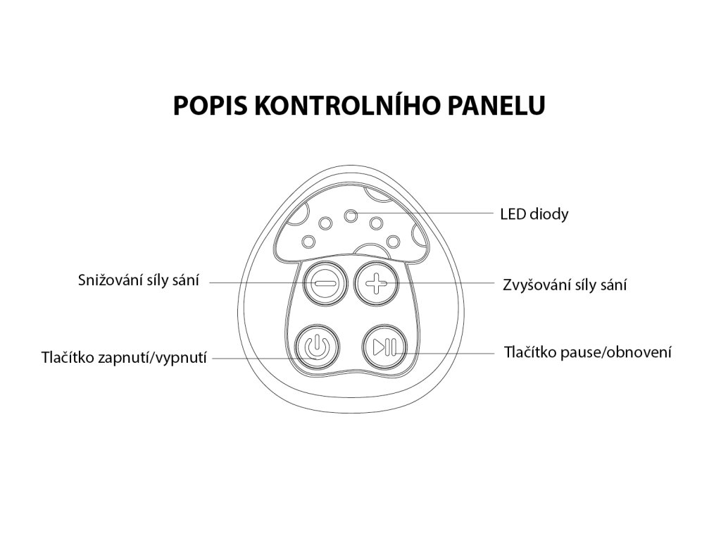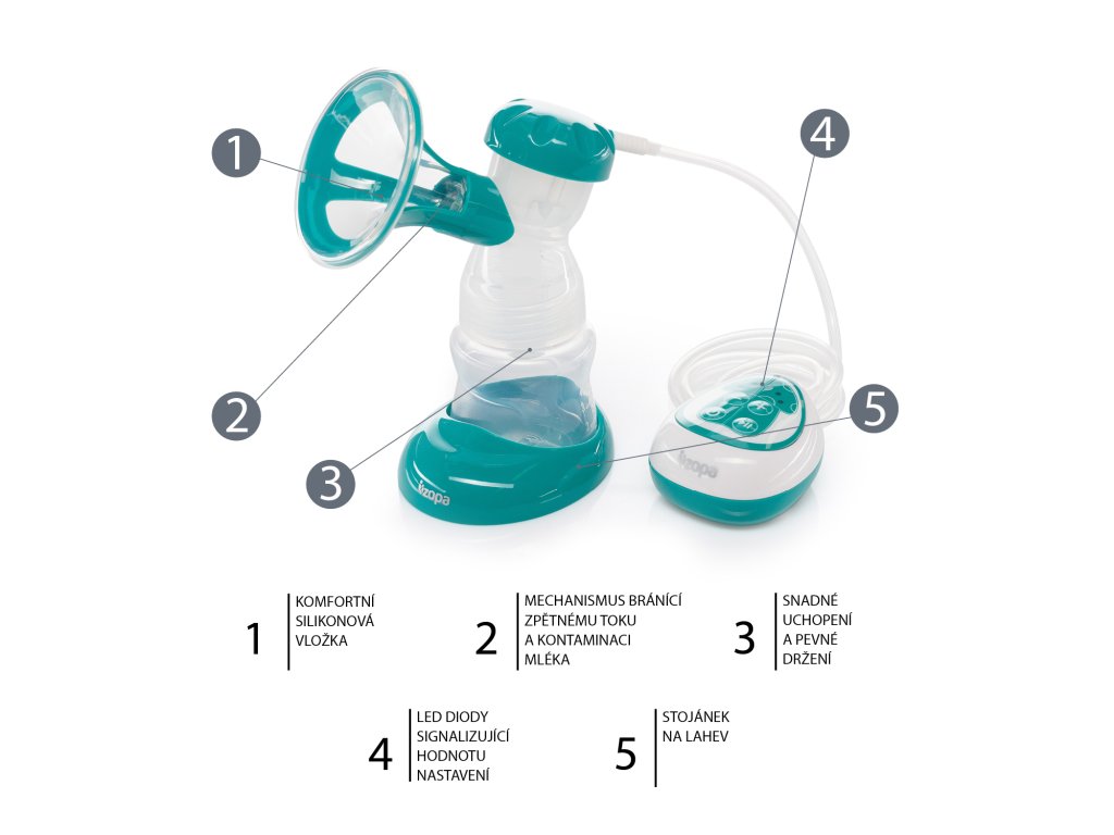 Odsávačka má dva režimy – stimulaci a sání. U každého režimu je možné regulovat sílu podtlaku, u stimulace 2 stupně, u odsávání 3 stupně intenzity. Každá maminka si tak může nastavit sílu, která jí bude vyhovovat. Odsávačka je navržena tak, aby odsávání bylo bezbolestné a pohodlné. Napájení motorové jednotky zajišťuje kabel s micro USB portem. Odsávačku je tedy možné napájet s jakýmkoliv zařízením, které má USB port. Konstrukce a rozměry odsávačky umožňují optimální využití jak doma, tak na cestách. Membránová konstrukce zabraňuje míchání vzduchu a mléka, brání zpětnému toku mléka a zabraňuje tak jeho kontaminaci. Led diody signalizují aktuální nastavení odsávačky.