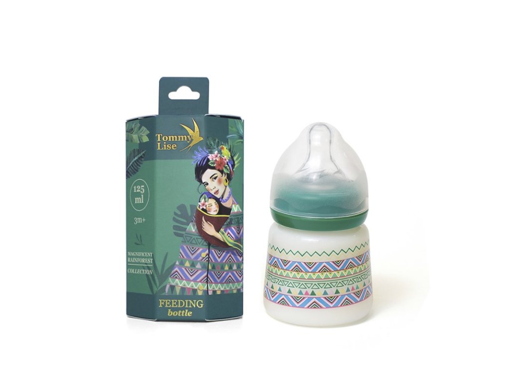 Kojenecké lahve mají široké hrdlo a jsou vyrobeny z kvalitního a nerozbitného polypropylenu. Výrobek neobsahuje škodlivé BPA, savička je opatřena dvojitým antikolikovým systémem. Duální ventil zajišťuje lepší cirkulaci vzduchu, zabraňuje zácpě a tomu, aby se vzduch a plyny dostaly při pití do bříška dítěte. Savička je vyrobena z odolného silikonu a je bez rizika propadnutí, miminku tak zajišťuje maximální komfort při krmení. Užijte si krmení vašich ratolestí spolu s kojeneckou lahví se širokým hrdlem, která pochází z kolekce Magnificent Rainforest. Nechte vaše dítě vyniknout a zazářit díky originální lahvi s hravým designem.Klíčové vlastnosti:-Doporučený věk: od 3 měsíců-Bezpečnost: neobsahuje bisfenol (BPA) a ftaláty-Materiál: polypropylen, silikon-Dvojitý antikolický systém-Široké hrdlo pro jednodušší plnění i údržbu-Silikonová savička neabsorbuje pachy, chutě nebo barvy z potravin-Láhev má měrku pro jednodušší přípravu mléka-Dostupná ve 3 velikostech: 125 ml, 250 ml a 360 ml-Zabalena v krásné papírové krabičce-Doplňkové parametry