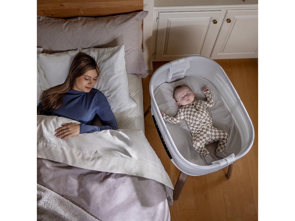 převratně chytrá postýlka, nabitá funkcemi včetně unikátní technologie Cry Detection Technology, která sama rozpozná pláč dítěte a okamžitě spustí uklidňující funkce pro rychlejší návrat ke spánku.