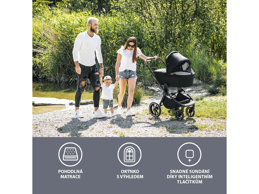 poloze, a rodič poté pohodlně pomocí madla sejme korbu z podvozku.