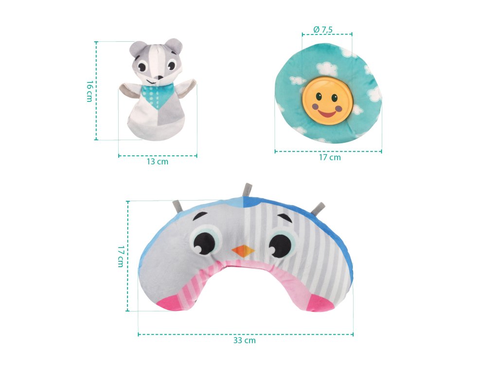 Interaktivní hrací deka 3D poskytne nejmenším dětem dokonalý prostor pro rozvoj a zábavu. Plyšové hračky, které vydávají po dotyku zvuky, motivují miminka k tréninku koordinace oko - ruka a později k úchopu.