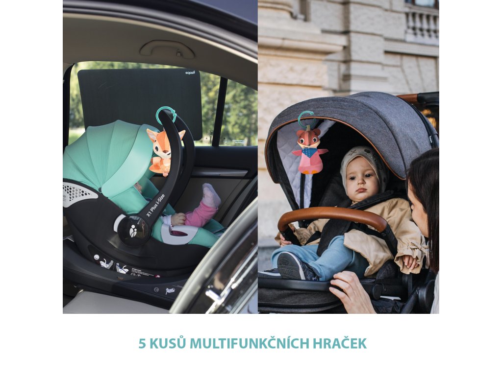 Hračky se dají z hrazdičky snadno odepnout a připnout na kočárek, autosedačku