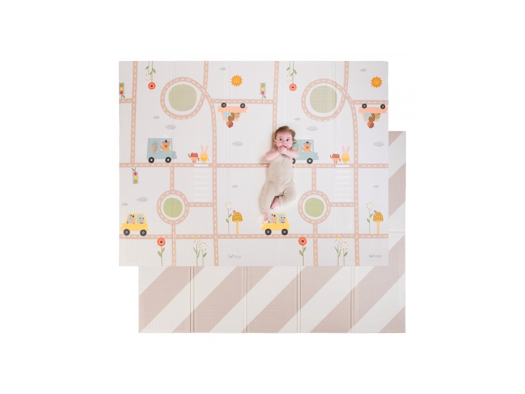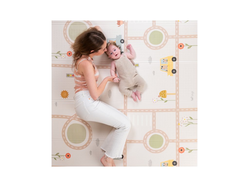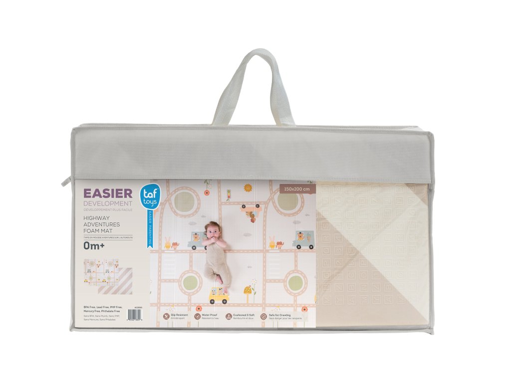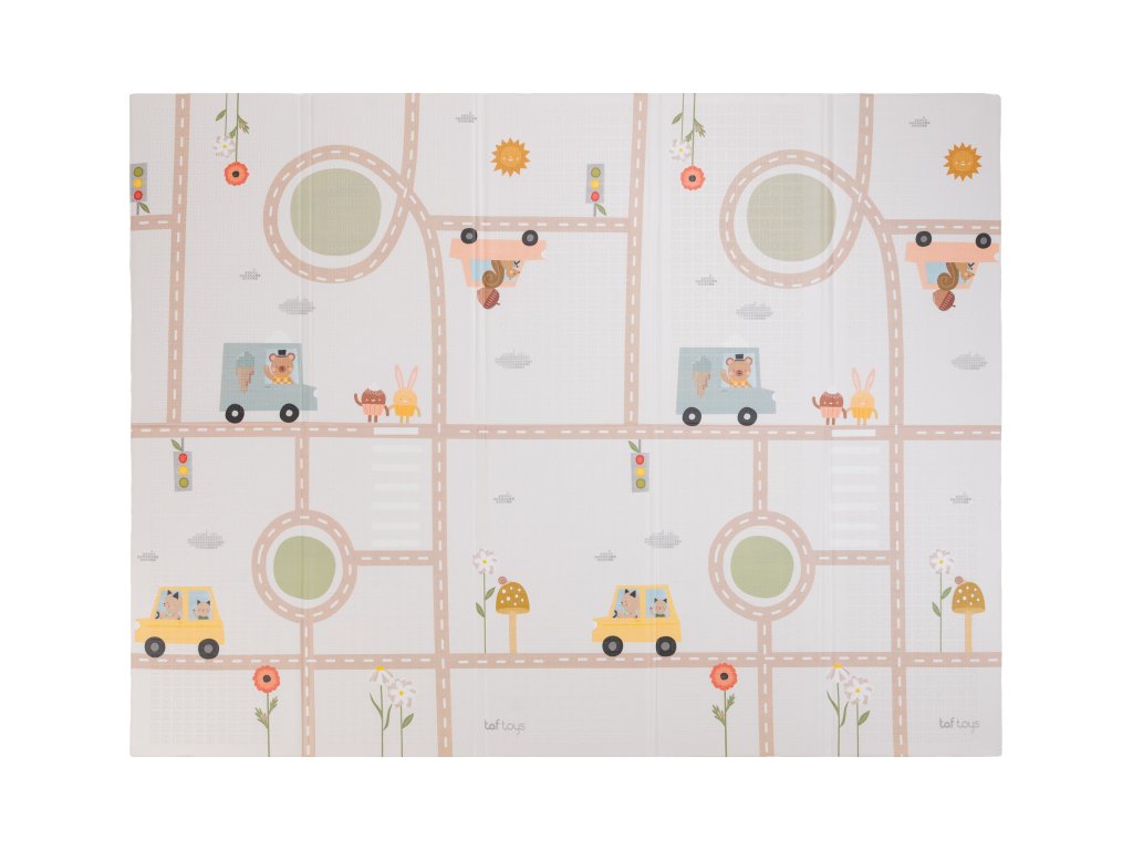 Dopřejte svému miminku měkké, bezpečné místo na hraní, lezení a objevování. Extra velká, oboustranná pěnová hrací deka Taf Toys kombinuje praktičnost, pohodlí a styl – ideální pro moderní rodiny s dětmi od narození. Odolná & stylová - prémiová pěnová vrstva s voděodolným povrchem pro použití doma i venku Měkká a bezpečná - tlumí nárazy, chrání před chladem a tvrdou podlahou - ideální pro první pokusy o lezení a převracení Praktická velikost - rozměr 150 x 200 cm poskytuje dostatek prostoru na hraní, po složení do tašky ji vezmete s sebou kamkoli potřebujete Oboustranné provedení - výrazné barevné ilustrace s doprvními motivy na jedné straně a moderní jednoduchý design na straně druhé Snadná údržba - voděodolná a lehce omyvatelná, stačí otřít vlhkým hadříkem Zdraví na prvním místě - vyrobena z netoxických materiálů bez BPA, ftalátů, olova, rtuti a dalších škodlivin. Co podporuje: Kognitivní rozvoj - natištěné motivy a živé barvy podněcují vnímání vzorů a učení barev Pohyb & lezení - podporuje fyzický vývoj, první plazení i trénink rovnováhy během času na bříšku Emoční rozvoj - nádherné ilustrace rozvíjí fantazii a emocionální vnímání skrze hru Snadná údržba otřením. Vhodné pro děti od narození.Doplňkové parametry