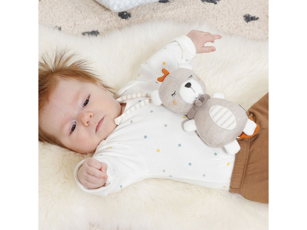 praktické stuhy umožňují hračku připevnit na kočárek, postýlku či autosedačku a