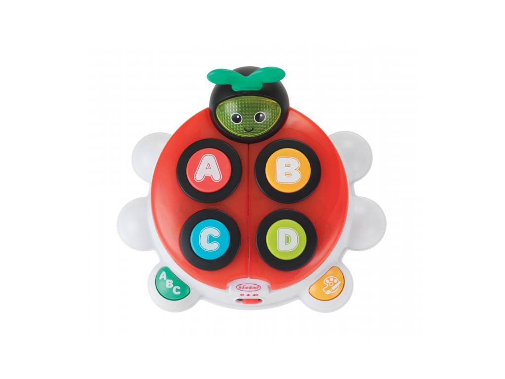 Roztomilá interaktivní beruška, která děti zábavnou formou učí 5 barev a celou abecedu. Stačí otevřít křídla a objeví se všechna písmenka. Hračka dětem představuje názvy písmen, říká slova, která na dané písmeno začínají, a navíc je zapojuje do hry pomocí „hledej a najdi“ kvízů – ptá se, aby děti našly konkrétní písmena nebo barvy. Pro ještě větší zábavu berušce svítí obličej. Beruška nabízí 4 písničky, 93 slov a frází a 14 zvukových efektů, které pomáhají udržet pozornost dítěte. Hračka nabízí dva režimy hraní dle věku dítěte. Pro nejmenší děti jsou vhodná velká tlačítka ABCD, větším dětem stačí otevřít křídla berušky a zpřístupnit tak kompletní abecedu. Všechny mluvené části jsou v angličtině. Vyměnitelné baterie 2xAA 1,5V součástí výrobku. Vhodné pro děti od 6 do 36 měsíců.Doplňkové parametry