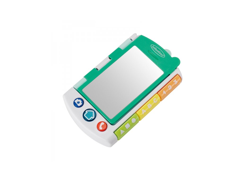 Zábavná interaktivní hračka Infantino, která spojuje telefon na hraní a malou obrázkovou knížku plnou překvapení. Na přední straně má velké zrcátko a tlačítka, se kterými si dítě může hrát na volání nebo focení. Po otevření stránek se spustí vzdělávací obsah – hračka přečte jednoduché věty a vybízí děti k objevování tvarů, barev a čísel. Hudební část nabízí 4 originální písničky, 43 povzbuzujících frází a 6 zábavných zvukových efektů. Všechny mluvené části jsou v angličtině. Vyměnitelné baterie 2xAAA 1,5V součástí výrobku. Vhodné pro děti od 6 do 36 měsíců.Doplňkové parametry