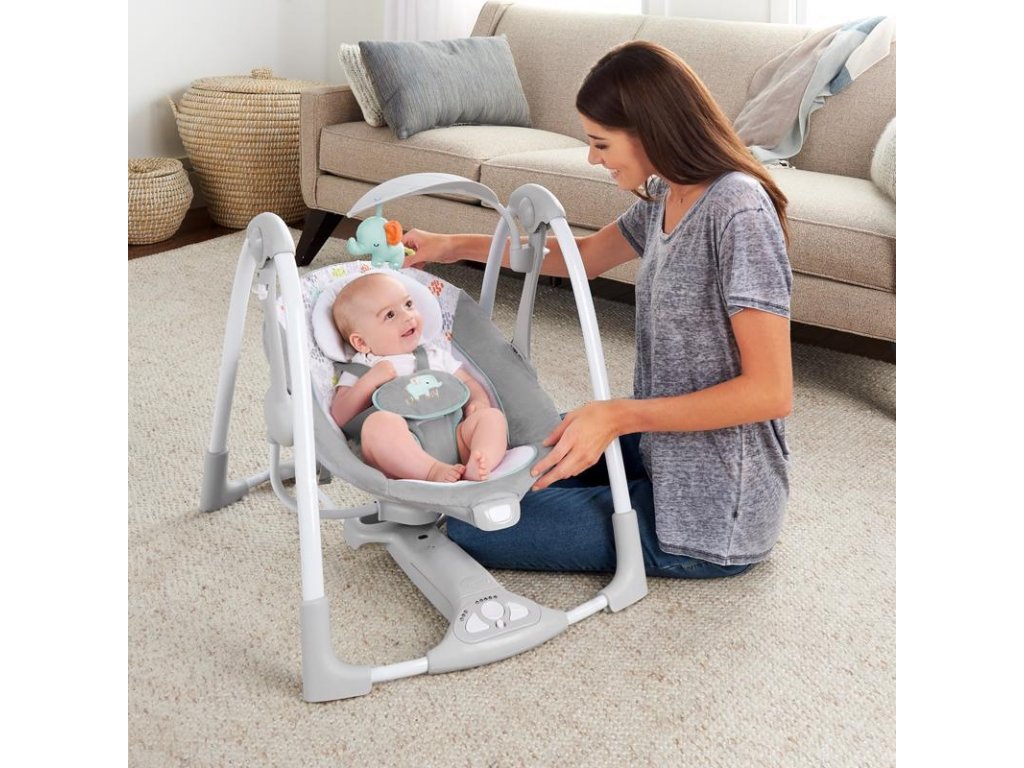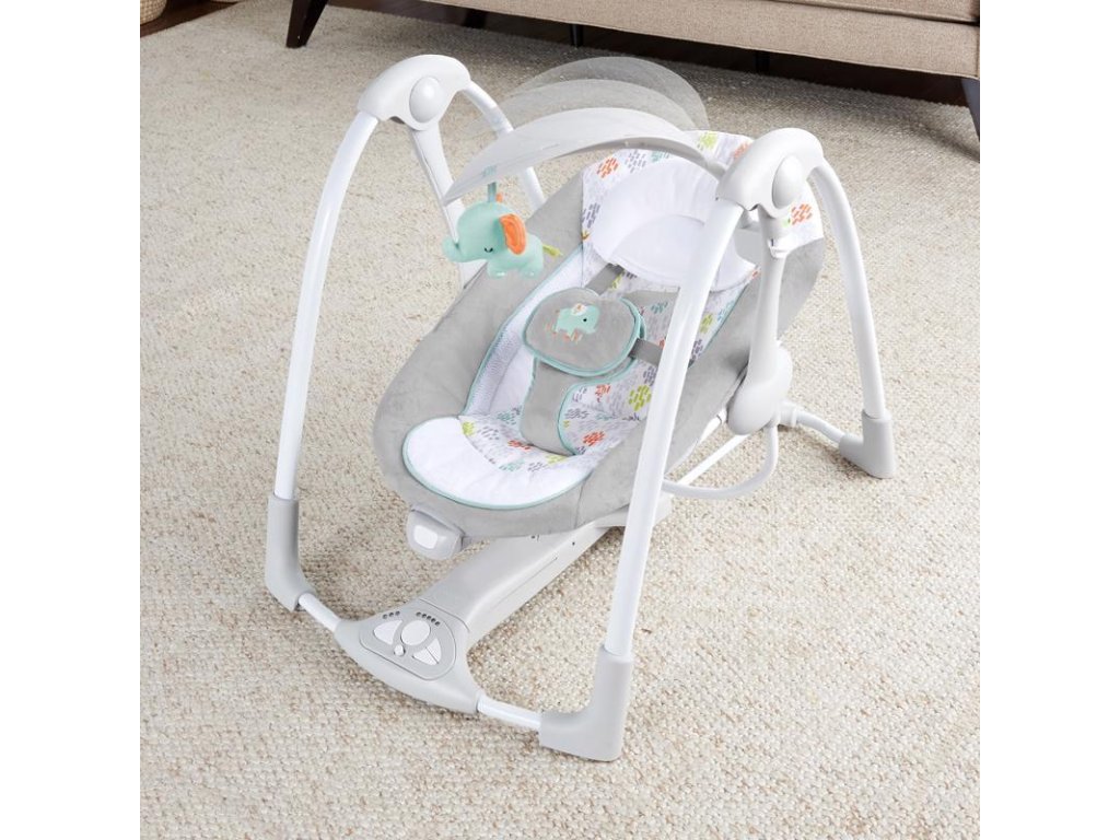 Šikovná houpačka, která umožňuje nastavení do dvou poloh! Houpačka se bez námahy promění na stacionární lehátko a Vy můžete mít během dne na pár okamžiků volné ruce. Houpačka umožňuje nastavit 5 různých rychlostí, 12 melodií a 4 přírodní zvuky. Na houpačce je upevněn polohovatelný list s plyšovým kamarádem, ale i místa pro připojení více hraček. Houpačka je ideální pro holčičky i chlapce. Houpačka se snadno skladuje a přepravuje. Časovač houpačky lze nastavit na 3 varianty: 30, 45 a 60 minut. S technologií WhisperQuiet ™ děťátko bude odpočívat spokojeně bez rušení. Houpačka je vybavena 5- bodovým pásem a protiskluzovými nožičkami pro bezpečnost a snadno se udržuje v čistotě. Neutrální design a luxusní funkce usnadní den rodičům a dopřejí odpočinek děťátku. Stejně tak si můžete vychutnat dvojité výhody technologie a baterií. Jste-li v blízkosti zásuvky, můžete použít síťový adaptér anebo přepnete houpačku do režimu baterie.Vlastnosti: