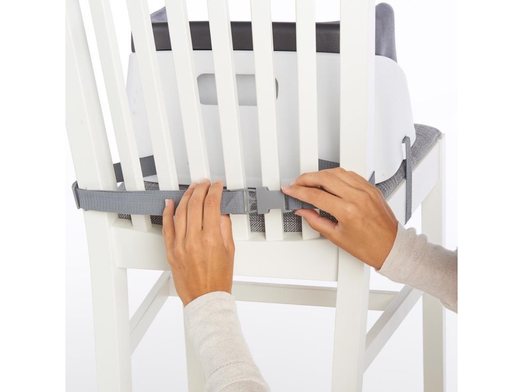 - podsedák lze bezpečnostními popruhy připevnit k židli, což umožňuje používat jej téměř u každého stolu