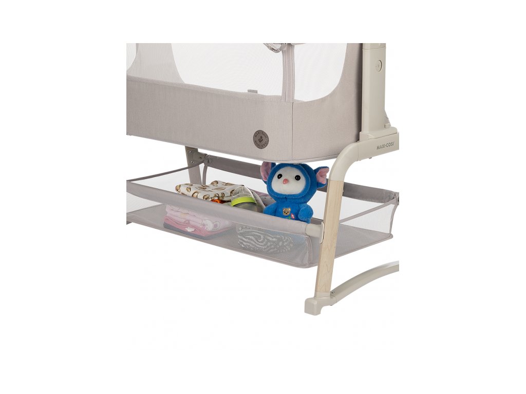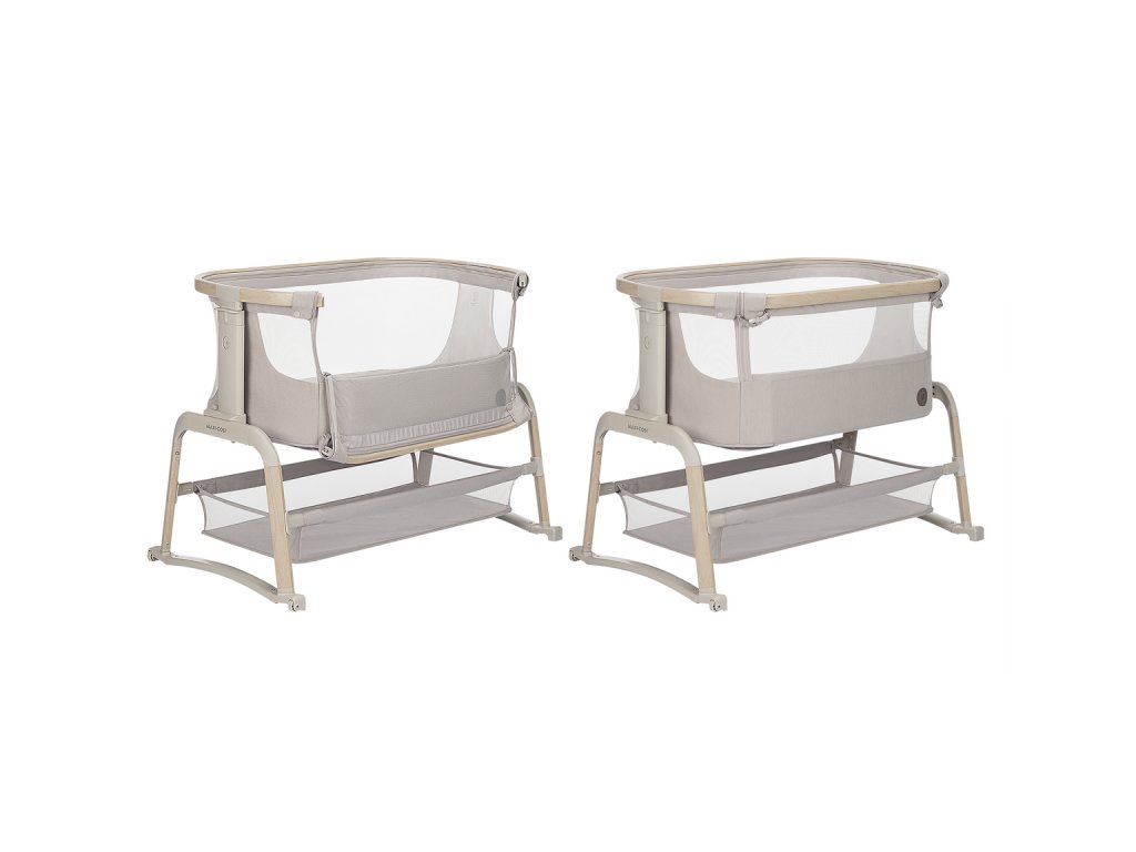 Postýlka Maxi-Cosi Iora Air je ideální pro všechny rodiče, kteří chtějí mít své miminko nablízku i během spánku. Postýlka nabízí 5 výškových poloh a možnost úpravy bočnice, abyste miminko mohli mít na dosah ruky vedle své postele. Postýlka nabízí možnost houpání do stran jako v kolébce pro snadnější uspání miminka. Pokud vaše miminko trápí reflux, můžete využít možnost matraci umístit do lehce šikmé polohy s vyvýšenou horní částí. Postýlka je vybavena kvalitní pěnovou matrací. Boční síťované stěny zajišťují větrání postýlky. Prostorný úložný koš pod postýlkou můžete využít pro uložení všeho nezbytného pro přebalování a celkovou péči o miminko. Neviditelná kolečka usnadňují přesunování postýlky v interiéru. Postýlku je možné složit do praktické cestovní tašky a využít ji i na cestách. Textilní části postýlky jsou s ohledem na udržitelnost životního prostředí vyrobeny ze 100% recyklovaných materiálů. Snadno snímatelný potah postýlky i úložný koš je možné prát v pračce. Vhodné pro děti od narození do 9 kg (cca do 6 měsíců). Hmotnost: 9,7 kg Rozměry: D 97 cm x Š 52,3 cm Upozornění: Postýlka je vhodné pouze do doby, než se dítě začne zvedat na kolena a ruce.Doplňkové parametry