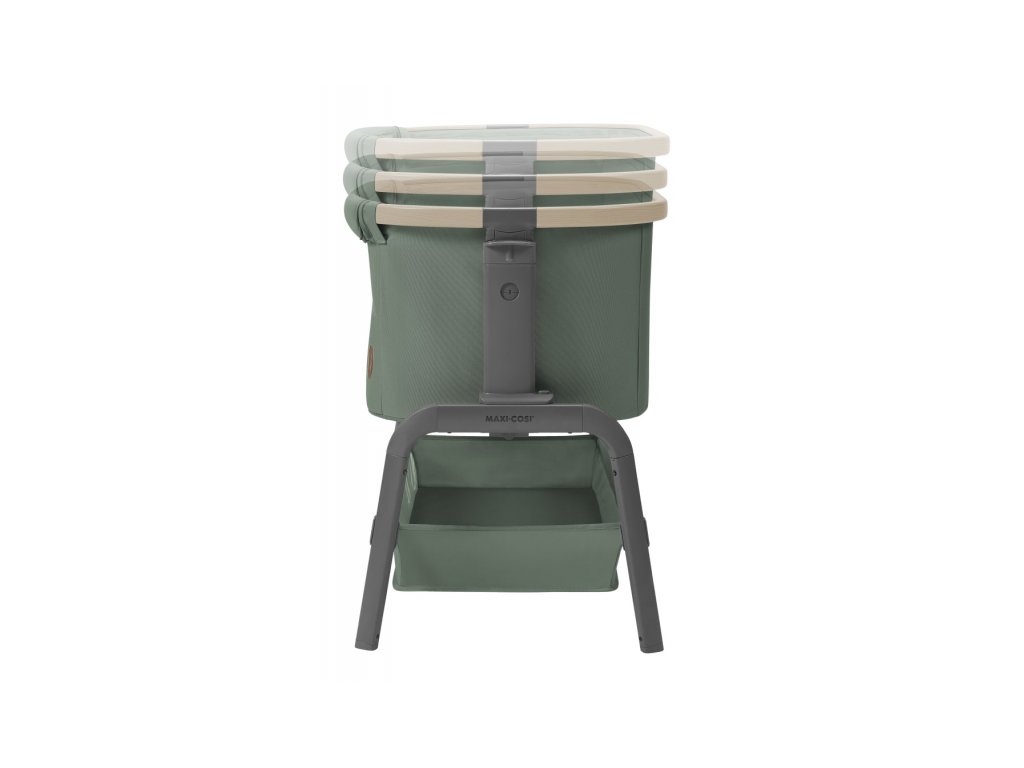 Postýlka Maxi-Cosi Iora je ideální pro všechny rodiče, kteří chtějí mít své miminko nablízku i během spánku. Postýlka nabízí 5 výškových poloh a možnost úpravy bočnice, abyste miminko mohli mít na dosah ruky vedle své postele. Funkce Easy Slide umožňuje dokonalé přisunutí postýlky k vaší posteli. Pokud vaše miminko trápí reflux, můžete využít možnost matraci umístit do lehce šikmé polohy s vyvýšenou horní částí. Postýlka je vybavena kvalitní pěnovou matrací. Boční síťované okno zajišťuje větrání postýlky. Prostorný úložný koš pod postýlkou můžete využít pro uložení všeho nezbytného pro přebalování a celkovou péči o miminko. Postýlku je možné složit do praktické cestovní tašky a využít ji i na cestách. Textilní části postýlky jsou s ohledem na udržitelnost životního prostředí vyrobeny ze 100% recyklovaných materiálů. Snadno snímatelný potah postýlky i úložný koš je možné prát v pračce. Vhodné pro děti od narození do 9 kg (cca do 6 měsíců). Hmotnost: 10,8 kg Rozměry: D 93 x Š 55 V 74,5 - 85,5 cm Matrace: 80 x 58,5 x 3 cm Upozornění: Postýlka je vhodné pouze do doby, než se dítě začne zvedat na kolena a ruce.Doplňkové parametry