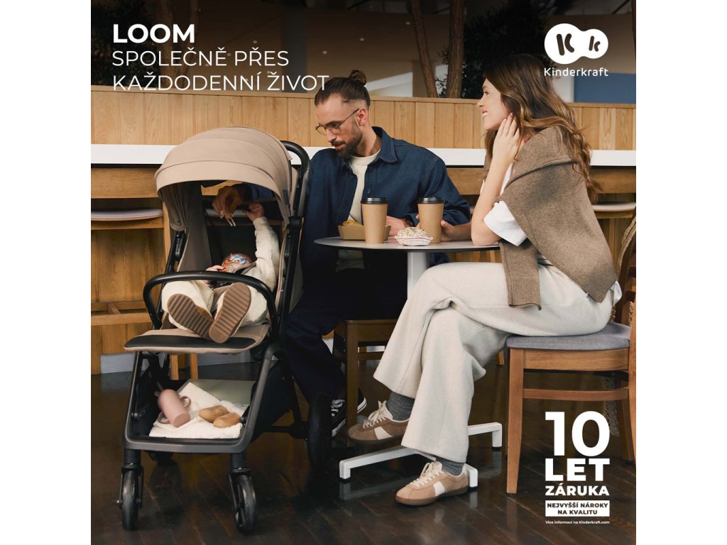 Kočárek Kinderkraft LOOM je lehký a obratný kočárek, ideální pro každodenní použití. Díky kompaktnímu designu a automatickému systému skládání se snadno ovládá a výborně se hodí pro cestování. Je navržen pro děti do 22 kg, což zaručuje pohodlí až do věku 4 let.Kočárek LOOM vyniká svojí ovladatelností – dá se jednoduše řídit jednou rukou a kola odolná proti propíchnutí zvládnou různé terény bez námahy. Stříška chrání před sluncem a větrem, zatímco ventilační panely zajišťují správný průtok vzduchu, čímž zaručují pohodlí během celého roku.