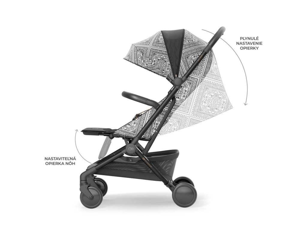 Magnetické, pětibodové bezpečnostní pásy zaručují bezpečnost a snadné používání - zapnutí a odepnutí trvá jen chvíli. Bezpečnostní pás je také vybaven pohodlným výškovým nastavením, které vám umožní přizpůsobit jej výšce dítěte nebo tloušťce oblečení, aniž byste jej museli znovu zapínat. Otočné madlo, které lze z obou stran odebrat, navíc usnadňuje nakládání a vyjímání dítěte z kočárku a poskytuje rodičům maximální komfort.