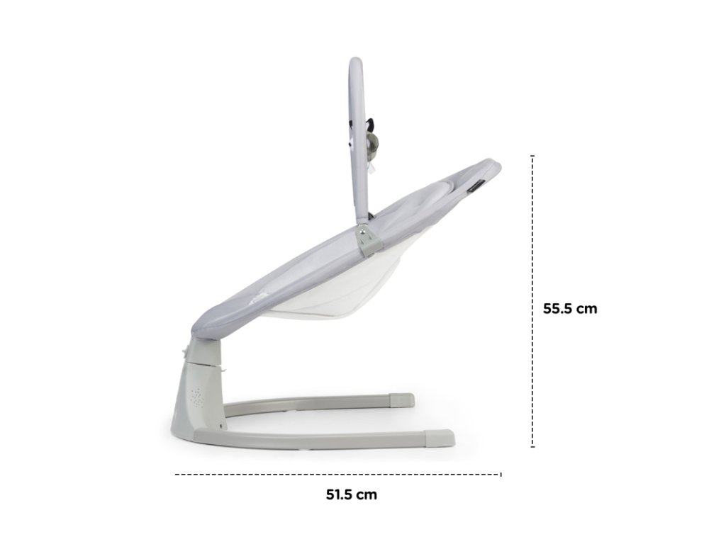 - kolébka má až 12 zabudovaných melodií s ovládáním hlasitosti - pokud dítě pomalu usíná, stačí jedním kliknutím hudbu ztlumit.