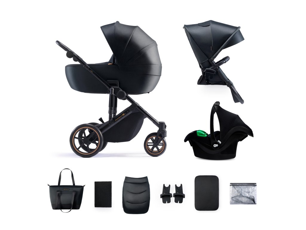 Kočárek se dodává s praktickým příslušenstvím: elegantní taška s cestovní přebalovací podložkou, pláštěnka proti dešti, síťka proti hmyzu, dětská autosedačka s adaptéry, matrace do vaničky, nánožník (pro sportovní kočárek i pro vaničku).