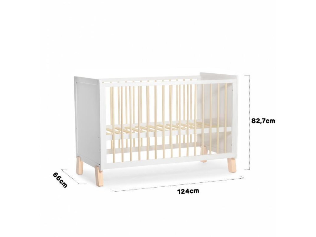 Multifunkční dětská postýlka NICO byla navržena tak, aby sloužila dítěti od narození, až dokud se dítě samo nepokusí opustit dětskou postýlku. Dno lze nastavit až na 3 výškové úrovně, přičemž snadná demontáž jedné strany vám zase umožní rychle přeměnit dětskou postýlku na gauč pro starší dítě. NICO má zabudované kratší strany postele a kromě toho je vybavena designovými nožkami, které usnadňují úklid pod tímto nábytkem. Postýlka byla vyrobena z borovicového dřeva, které se vyznačuje svou odolností, a samotný nábytek má nadčasový design. Plocha na spaní je 120x60 cm.Bezpečnost: