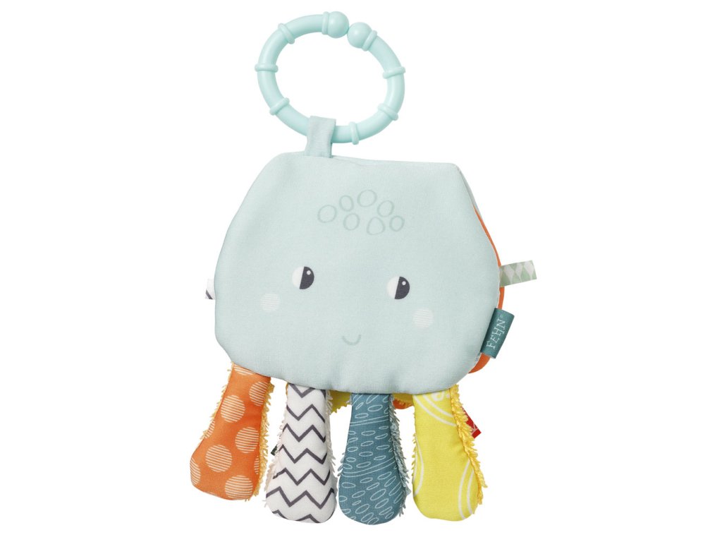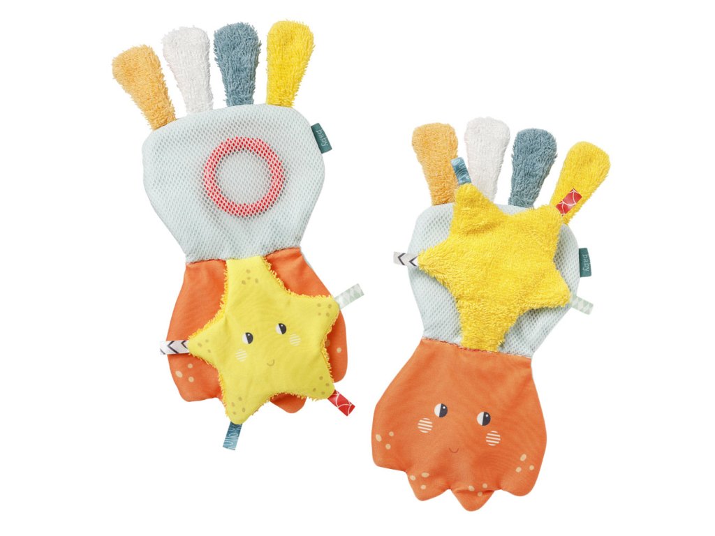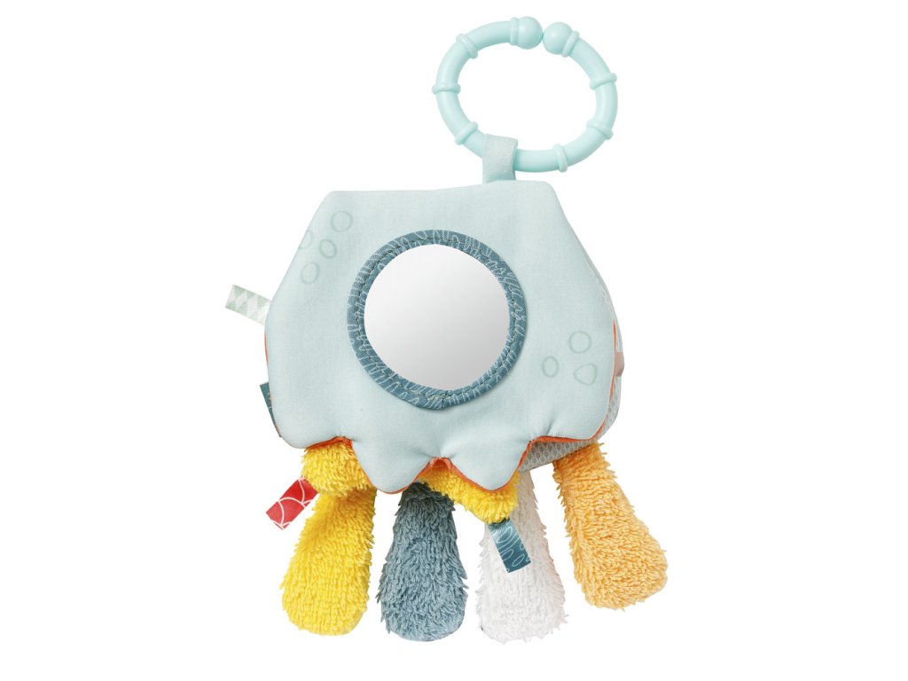 chrastítko, šustící papír a zrcátko hravou formou stimulují dětské smysly,
