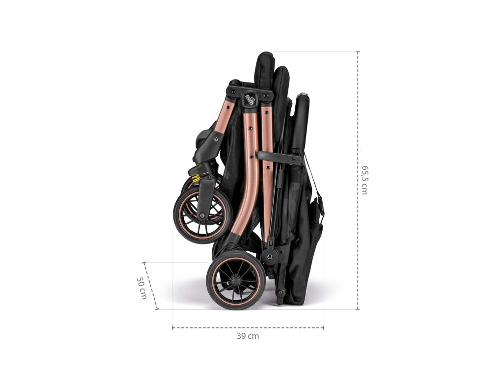 Kočárek Compass II váží jen 6,9 kg a velmi snadno se skládá. Složený zabírá minimum místa, samostatně stojí a má vysunovací tyč, pomocí které ho můžete vézt jako kufr. V ceně je také taška pro přenášení. Děti v něm mohou jezdit až do 22 kg. Přesto, že je ultra lehký a skladný, nabízí mnoho dalších praktických funkcí.