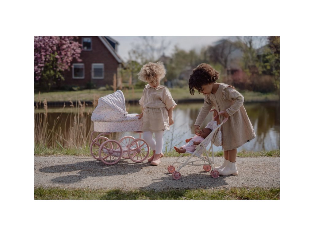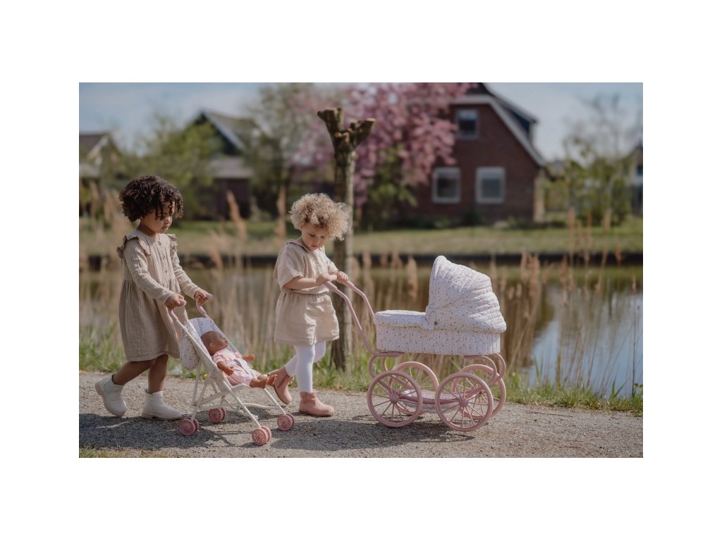 Golfový kočárek Little Dutch pro panenky, ale i pro plyšáky a další hračky je oblíbenou a vděčnou hračkou pro malé holčičky i kluky. Kočárek je vybaven taškou na rukojeti pro uložení drobností, bezpečnostní pás drží panenku během jízdy bezpečně usazenou. Kočárek s lehkou kovovou konstrukcí je vhodný pro použití doma i na procházkách venku. Podporuje dětskou fantazii a hru na role Textilní části s krásným květinovým potiskem Praktický úložný prostor na hračky a doplňky Měkký potah rukojetí pro příjemné držení Stabilní kovová konstrukce a kvalitní zpracování Snadné skládání pro úsporu místa a pohodlné uložení Stylový květinový design krásně ladí s dalšími doplňky pro panenky z kolekce Little Dutch Soft Flowers. Rozměry: 47 x 26,5 x 56,5 cm Panenka není součástí balení. Vhodné pro děti od 3 let.Doplňkové parametry