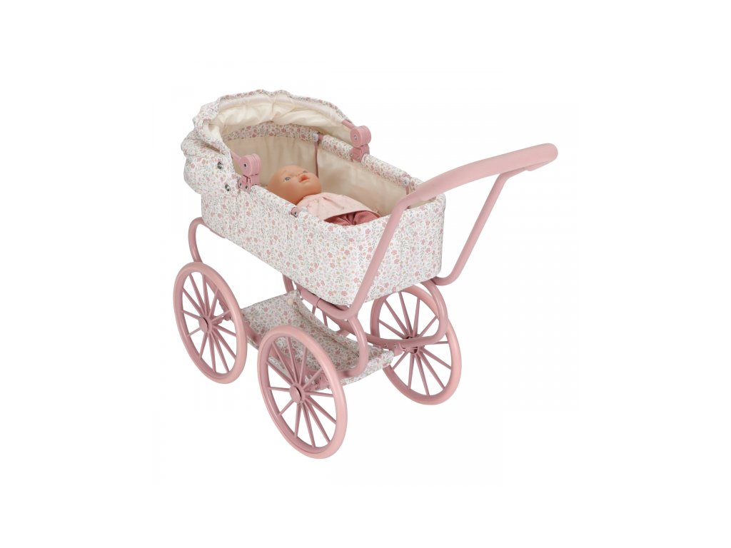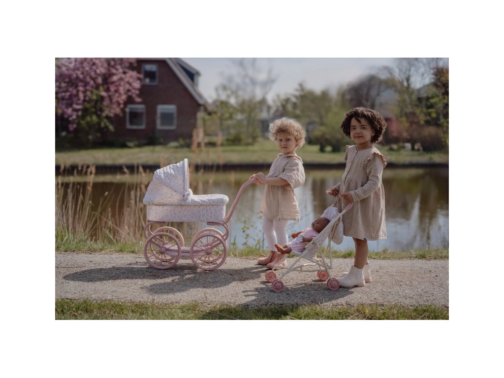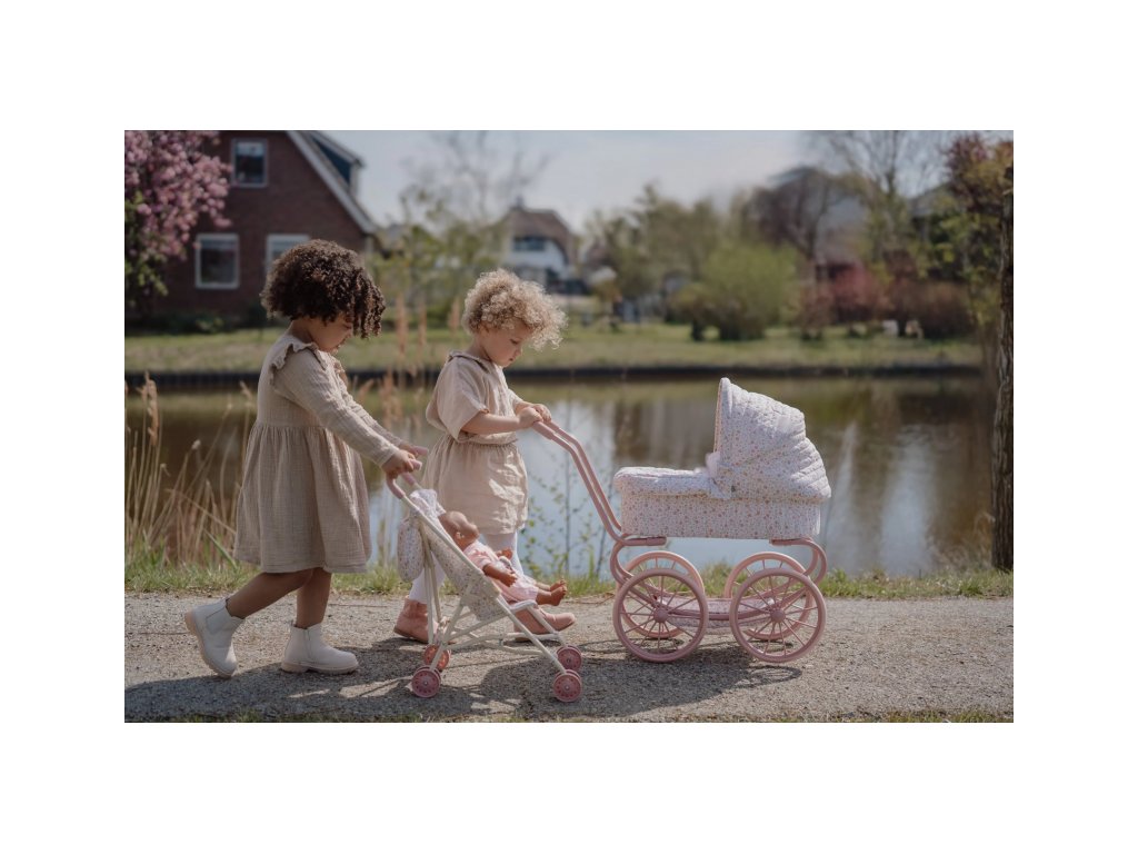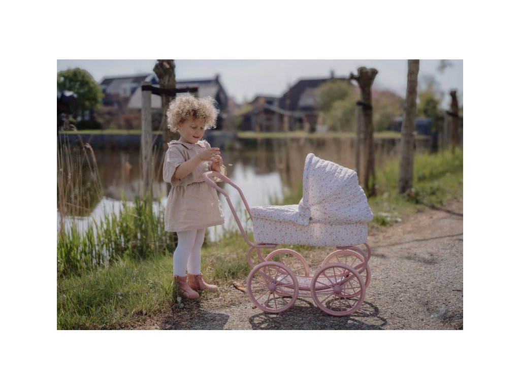 Klasický kočárek pro panenky Little Dutch v krásném retro designu potěší každé dítě, které si rádo hraje s panenkami. Díky čtyřem velkým kolečkům je jízda stabilní a plynulá – a to jak doma, tak venku. Uvnitř je měkká matrace, která poskytne panence pohodlné místo k ležení. Spodní úložný košík nabídne dostatek prostoru na doplňky nebo malé hračky. Robustní kovová konstrukce zajišťuje bezpečné a dlouhodobé používání, zatímco madlo s měkkým úchopem padne dětem pohodlně do ruky. Skládací stříška a odnímatelný nánožník pro realistickou hru Textilní části s krásným květinovým potiskem a prošívanými detaily Měkká matrace pro extra pohodlí panenky Spodní úložný košík na hračky a doplňky Odolná kovová konstrukce pro stabilní a bezpečné používání Měkké madlo pro pohodlné tlačení Stylový květinový design krásně ladí s dalšími doplňky pro panenky z kolekce Little Dutch Soft Flowers. Rozměry: 74,5 × 33,5 × 69 cm Panenka není součástí balení. Vhodné pro děti od 3 let.Doplňkové parametry