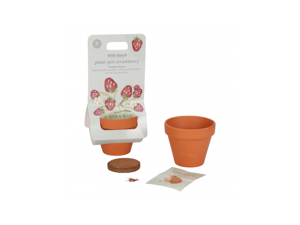 Květináč se semínky jahodníku je prvním krokem k vlastní zahrádce pro vaši malou zahradnici či zahradníka! Terakotový květináč obsahuje substrátovou tabletu a semínka jahodníku, který rychle roste a nádherně kvete i plodí jahůdky. Použití je snadné a radost z pozorování růstu rostlinky je zaručena! Návod k použití: Umístěte tabletu Cocopress® na misku a přidejte 30 ml vlažné vody. Přibližně po 5 minutách bude tableta plně nasycená a vytvoří přibližně 60 ml zeminy pro použití v květináči. Semínka rozprostřete do květináče a zakryjte je tenkou vrstvou zeminy. Květináč postavte na misku na světlé místo, například na parapet. Nenechte půdu v květináči vyschnout; udržujte semena mírně vlhká. Mladé rostlinky lze od poloviny května přesadit ven do truhlíku nebo na zahradu. Květináč je součástí designové kolekce hraček a doplňků Little Dutch Forest Friends, inspirované životem v lese. Vhodné pro děti od 3 let.Doplňkové parametry