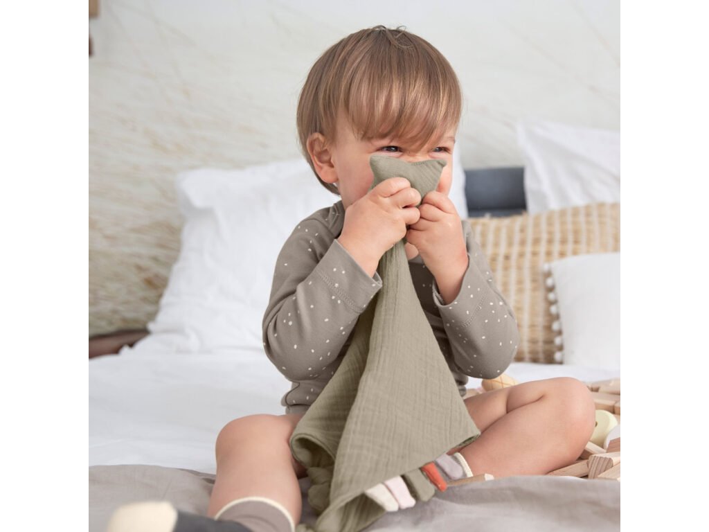Baby Comforter z kolekce Little Universe je jedním z dalších výrobků značky Lässig, vyznačující se vysokou kvalitou materiálů, jejich zpracováním a svojí funkčností.Měkký mušelínový hajáček slouží dítěti jako plyšová hračka, společník před spaním a náhradní dudlík. Ideální pro děti, které se rády choulí.
