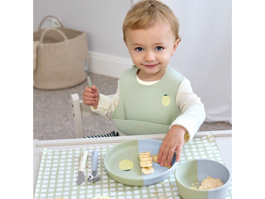 Německá značka LÄSSIG je lídrem v prodeji doplňků pro maminky a děti v západní Evropě. Jejich výrobky se vyznačují velmi vysokou úrovní zpracování a také praktičností, díky které si výrobky této značky oblíbili zákazníci ve více než padesáti zemích světa. Samostatnou kapitolou jsou pak materiály, které se vyznačují nejen špičkovou kvalitou a odolností, ale také ekologičností a napomáhají k dosažení nadčasového designu. Společnost Lässig GmbH je častým sběratelem významných ocenění. Výsledky svého úspěšného působení si však společnost nenechává jen pro sebe a podporuje celou řadu charitativních a ekologických projektů.Silikonový jídelní set je skvělým pomocníkem při stolování a prvních pokusech vaší ratolesti se vlastnoručně nakrmit. Společně se samostatně dostupným příborem se silikonovou rukojetí jsou děti připraveny na všechna jídla.